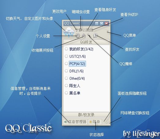 你是说QQ记录? 1. 你可以选择网吧模式登陆 [attachmentid=112903] 2. 换个皮肤 [attachmentid=112904] 简洁.方便, [attachmentid=112909]