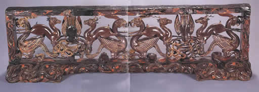 彩漆凤鹿木雕座屏