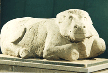 西汉。长260,宽160厘米,成功地表现了牛的温良驯服,粗壮有力的特点。神情安祥宁静,显示出坚韧耐劳、质朴敦厚的性格,圆睁的眼睛,肥大的喘息的鼻和宽厚的嘴,使牛的形象更为真实而生动。现藏于:茂陵博物馆。