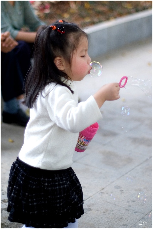交流 吹泡泡的小女孩儿