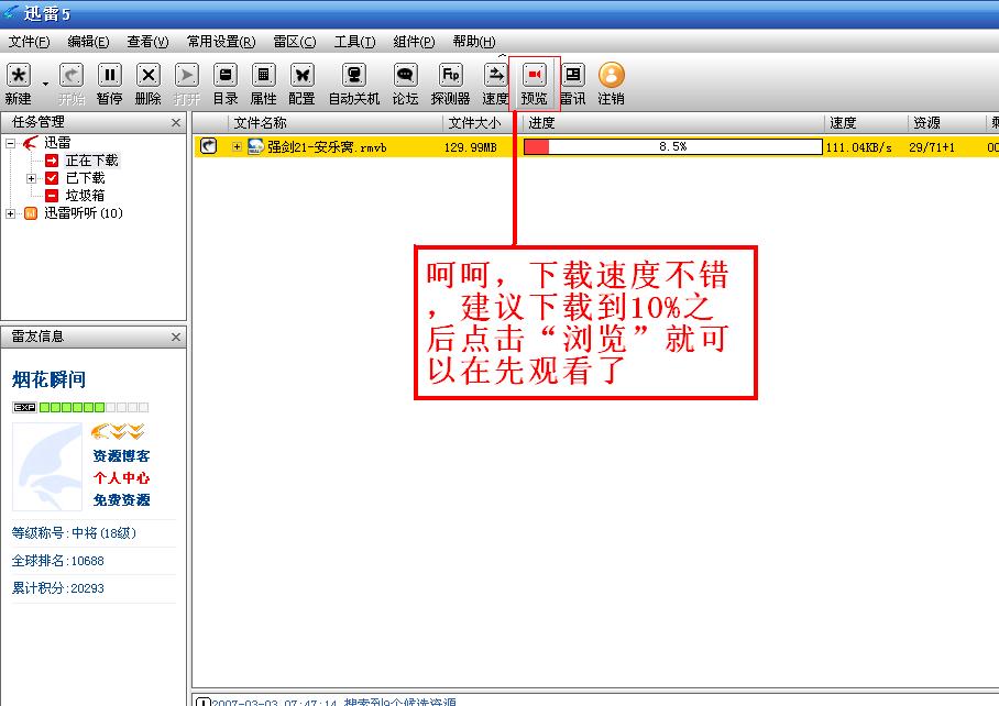 我很喜欢上网一边看电影,一边工作,但我不是浪费时间去下载。又不去送钱给那些收费电影网站。。。后退讯雷5退出了一边下电影,一边看的功能,现在来教大家怎么看。。