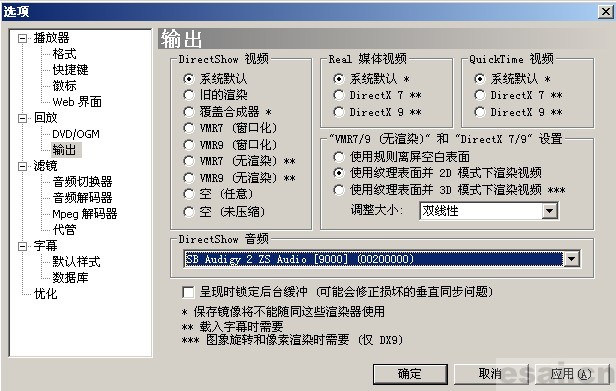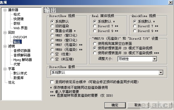 基本上常用的视频音频播放软件都有输出设备(output)的设置选项,所以大家参照着修改就是