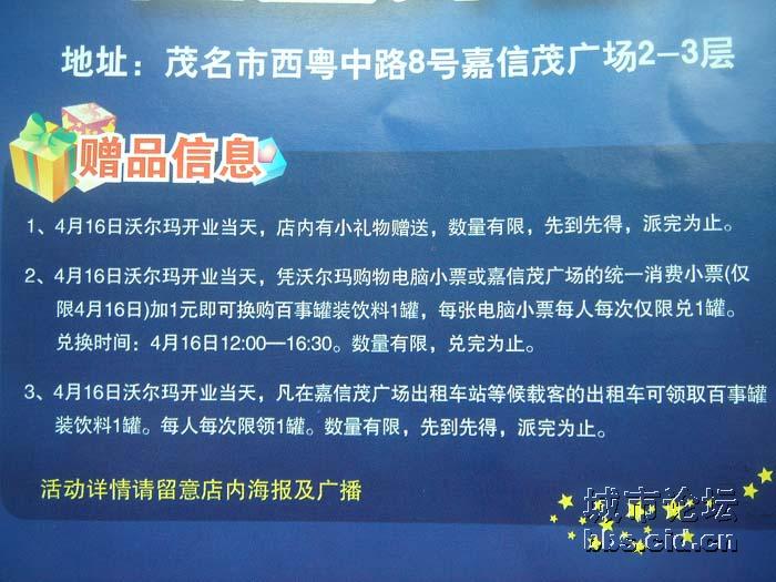 QUOTE(语无言 @ 2007年04月19日 Thursday, 03:34 PM) 不错不错.这应该是确切的消息了,有谁到过了吗,东西是不是真的便宜???感觉如何??? [snapback]1728885[/snapback] 开业了四天我去逛了三次, 感觉比明湖、国成、聚佳等本地超市好很多,通道宽敞明亮,货品摆设整整有条,且讲究美感,与深圳沃尔玛的摆设同属一风格,服务员亦比较热情有礼。大部分的东西相对便宜,且很多商品本地超市是没有的。今天在那买了一台四件套的果汁机才169元,因买的东西较多,服务员还亲自帮我推购物车到外面我停车的地方,不错。