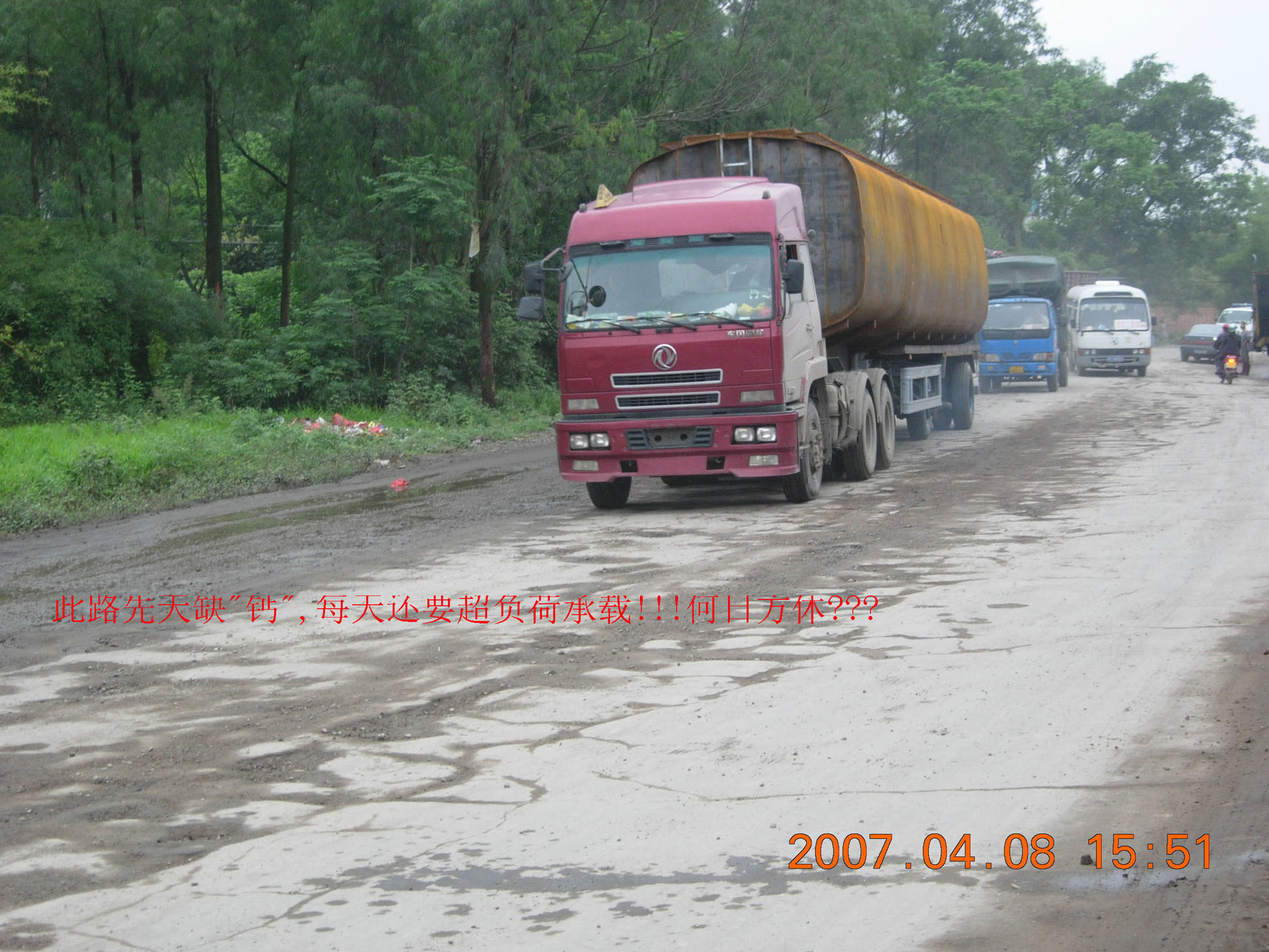 除了无数污染工厂,这条路的货车奇多,比高水路有过之而无不及,可说是粤西最多货车走的一条省道公路,如茂名市区大部分建筑工地的沙石是从霞洞经羊角运载的,而且日夜不停严重超载,沙石散落满地无人管,还有大型的油灌车、泥头车、阳春车、羊角车队数百台私营货车。。。按理如此重要的一条公路应大力整治管理才是,可那些官们就是视而不见。