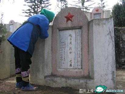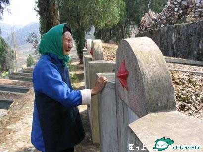 这位悲痛的母亲是老山战士赵占英的母亲,今年清明期间,她由侄儿侄媳陪同来到云南麻粟坡烈士陵园看望牺牲了20年的儿子。这是她第一次来陵园祭奠自己的儿子。    这位母亲来自昆明附近的蒿明县。近年来,当地go-vern-ment专门拨款给一些烈士家属一笔祭奠费用,这位母亲才得以20年第一次前往边境为儿子上香。据麻粟坡烈士陵园管理人员介绍,麻粟坡烈士陵墓园埋葬着957位老山作战牺牲的烈士。其中30多位烈士的家属从来来过,大部分是因没有路费而不能前来,有些家属来到陵园竟没有路费回家