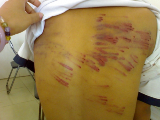 给他涂药水时,我的心在发抖,真的好难受!一个老师给他父亲打电话说:“你下午到学校来一下吧,孩子被你打伤成这样,我们已经给他涂了药水......”他父亲非常平静的说:“不用麻烦老师了,他经常这样的,涂了药水也没用。”.......