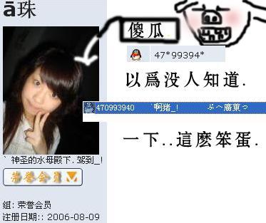 &GinS 淼木湍默等待. 注册 2005-05-03 消息 18,712 反馈评分 0 点数 61 年龄 37 2007-07-19 #10 QUOTE(电白路人甲 @ 2007年07月19日 Thursday, 04:30 PM) 好象只有你不知道她QQ [snapback]1837447[/snapback] 就是不知她QQ.. QUOTE(Asian @ 2007年07月19日 Thursday, 05:01 PM) 应该就是啦。 [snapback]1837463[/snapback] 尕鱼鱼