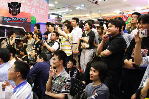 当天活动还来了上海变形金刚爱好者联盟的一大帮老动画爱好者,听到变形金刚的美版的变身的声音和"TRANSFORMER"的时候真的很燃啊,比圣斗士更有回忆的作品啊!!当时彻底燃了啊!太经典的作品了啊!