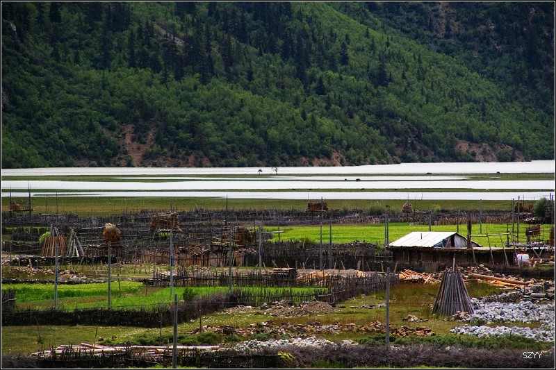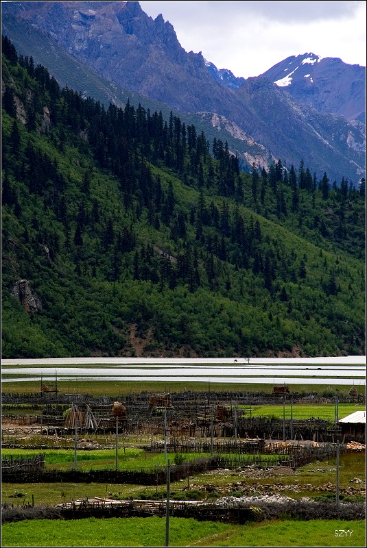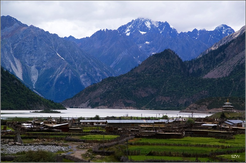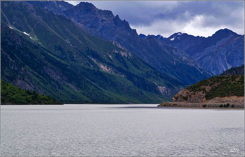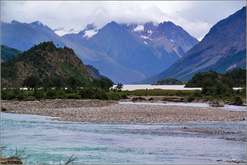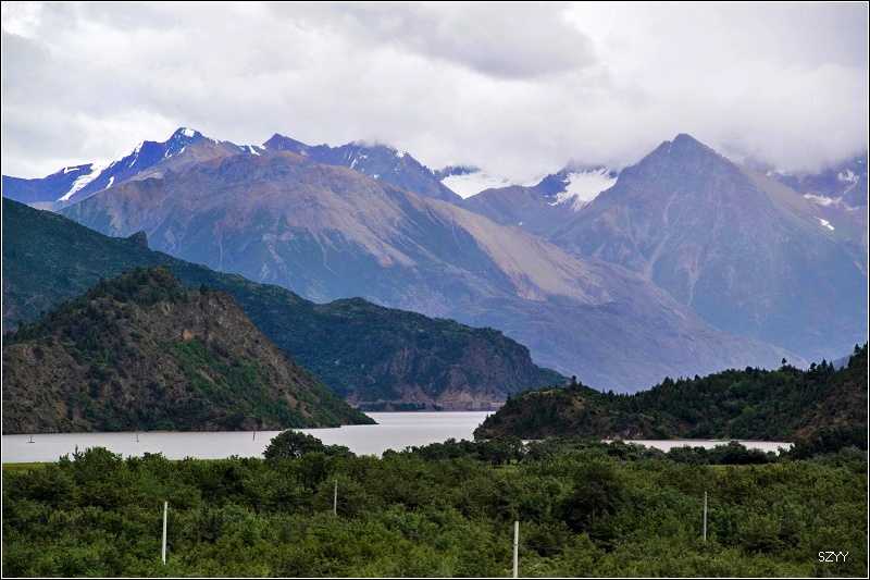 12点15到达八宿县,吃了午餐,我先吃完,把车开到一家洗车的地方,把满车的泥浆洗干净,回到餐厅,他们也都吃完了,13点35离开八宿赶往然乌,然乌海拔3700米左右,到然乌湖天色尚早,可以拍些片子,可是天气不好,而且由于是雨季,湖水都是黄的,我们沿着湖边向察隅方向走,路牌上写着“外国人严禁入内”。在湖边遇到几个深圳来的小青年,有男有女,玩的很开心的样子,他们说已经在然乌住了好几天了。我们继续沿着湖边的泥土路往南开,路很窄,并且下雨,非常滑,行车很危险,拍了些阴天然乌湖的景色,还有雪山、冰川,看看天色越来越阴沉,暴雨来了,我们只好驱车返回然乌,住然乌宾馆四人间。看到网上那么多然乌湖的漂亮照片,可惜由于天气和季节的原因,我们没拍到,很遗憾。