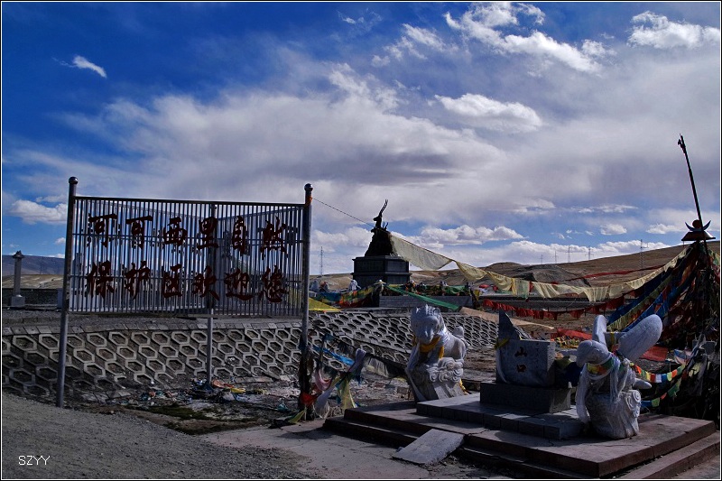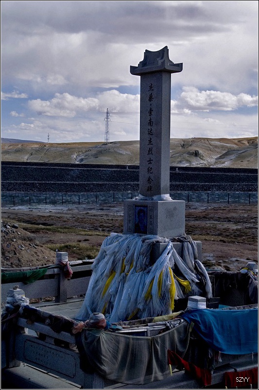 5点30到达昆仑山口,停下车,瞻仰了索南达杰烈士的墓碑,继续前进。