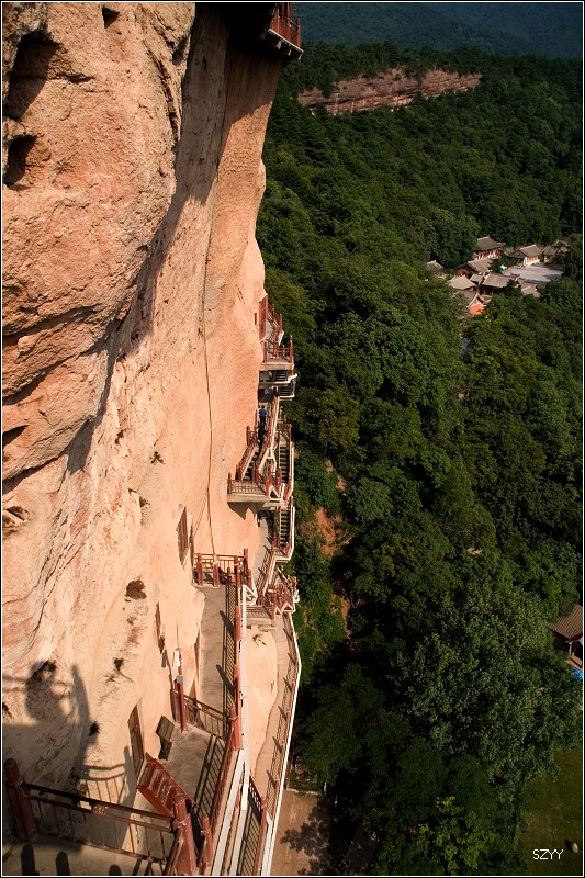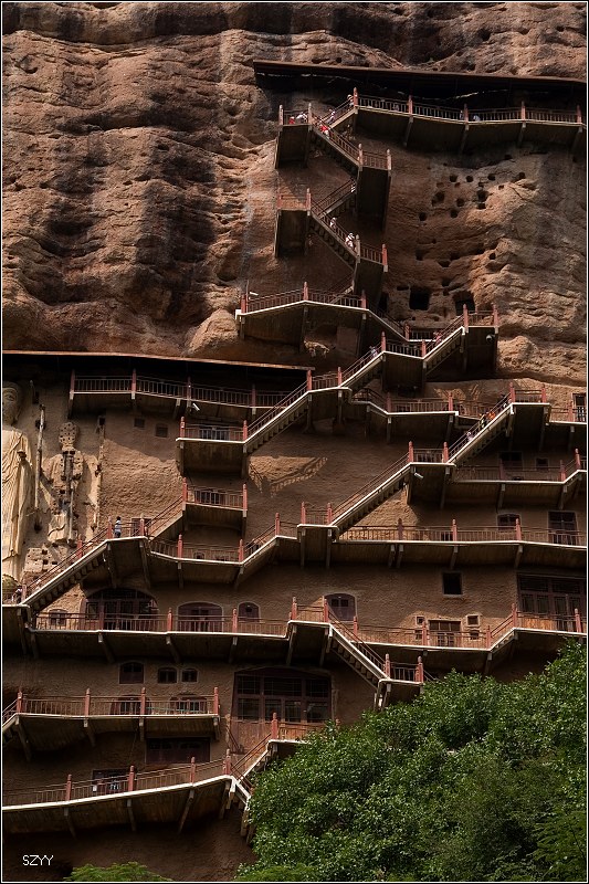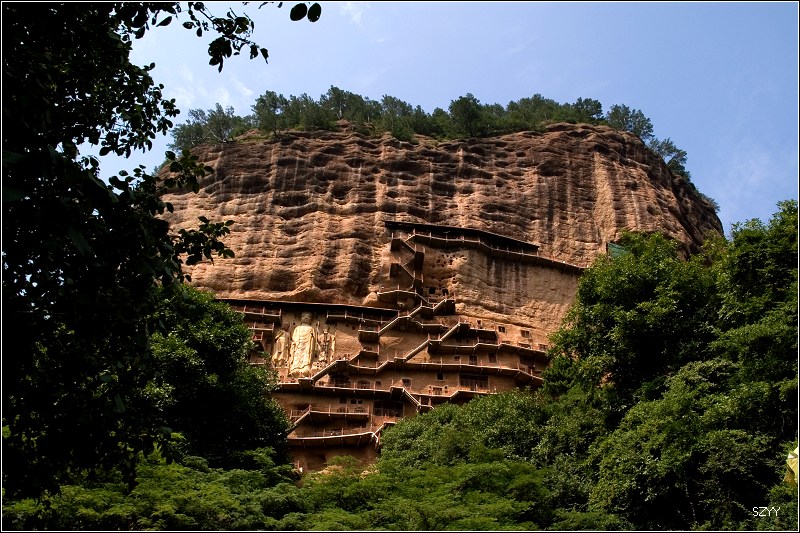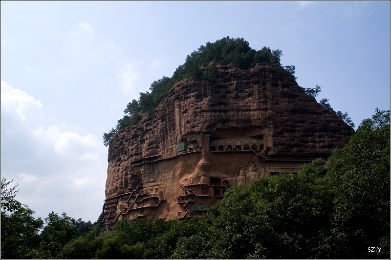 1点30进入天水市区,吃了午饭,去游览了麦积山石窟,到停车场后换景区环保车,开到石壁下,步行上去,玩了几个小时。