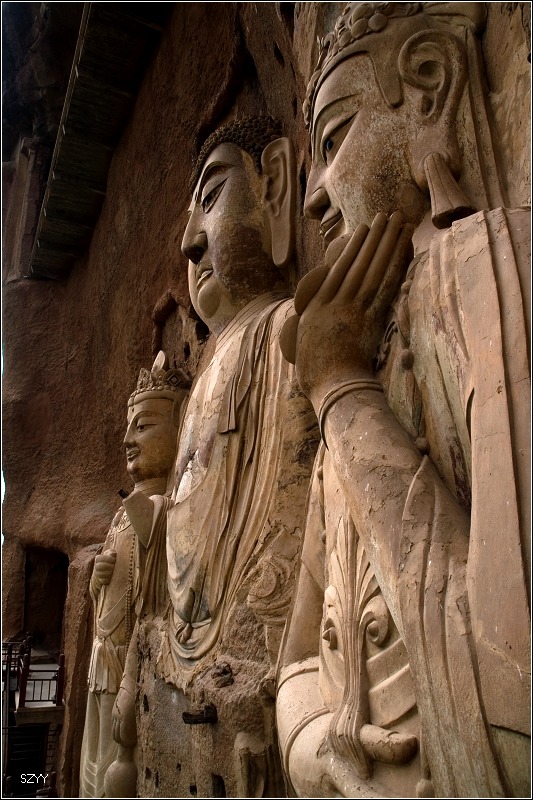 这壁画很特殊的地方就是面部是浮雕,而不是平面