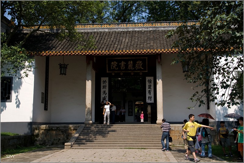 岳麓书院是中国古代四大书院之一,历史上著名的高等学府及学术文化中心。岳麓书院自北宋开宝九年(976)正式创立以来,历经宋、元、明、清各代,至清光绪二十九年(公元1903年)改为湖南高等学堂,尔后相继改为湖南高等师范学校、湖南公立工业专门学校,1926年正式定名湖南大学。历时千年,弦歌不绝,故世称“千年学府”。从岳麓书院至湖南大学的千年办学历史,反映了中国教育制度的变迁,是我国高等教育发展史的一个缩影。 岳麓书院创立伊始,即以其办学和传播学术文化而闻名于世。北宋真宗皇帝召见山长周式,颁书赐额,岳麓之名始闻于天下,有“潇湘洙泗”之誉。南宋张蛑鹘蹋理学史上颇负盛名的“湖湘学派”即发展于此;朱熹两度讲学,书院盛极一时,出现了“座不能容”、“饮马池水立涸”的盛况。其后,明代中叶的阳明学、明末的东林学、清乾嘉时期的汉学及晚清的新学,都曾在此得以传习和交流。岳麓书院的学术与教育,对湖湘文化传统的形成和发展产生了深刻的影响。