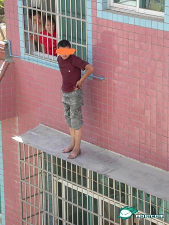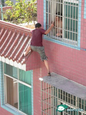 偷东西被发现..被迫追窗楼..