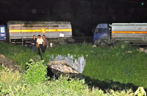 有关部门调来多辆槽罐车将残留的危险物运走处理。