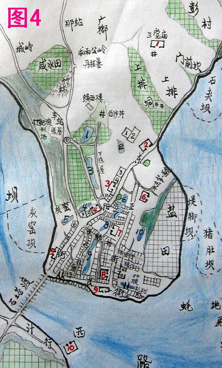 电海白鲨 大学三年级 注册 2006-07-05 消息 852 反馈评分 0 点数 0 2007-09-27 #24 地图绘画的也较生动,如图标、颜色、水东湾海水的深浅度等,文字书写也有点古韵味,特别是“水东墟地图”这几个隶体字。 铁潭坝应是现在的西湖吧,比原来小了很多,上排垌##应是东湖了,原来是沼泽地,车站位置好象不变,而海岸线往外推出了很多。