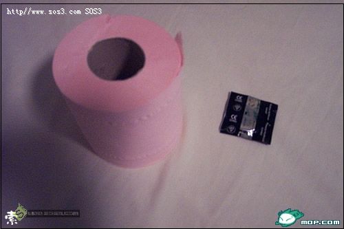 材料:卫生纸一卷(粉红色最佳),TT一个,剪刀(可选),水(可选)