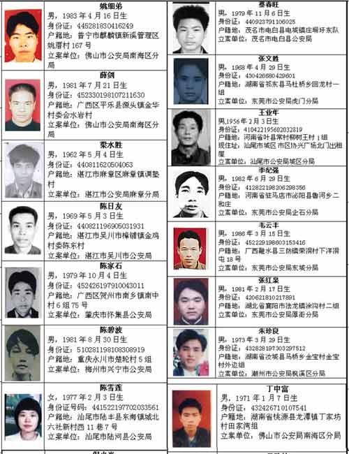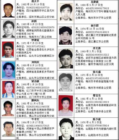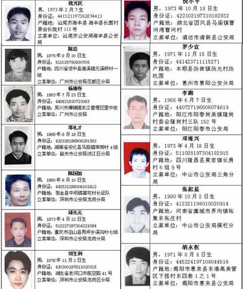 广东通缉百名重刑犯 每名悬赏5000元