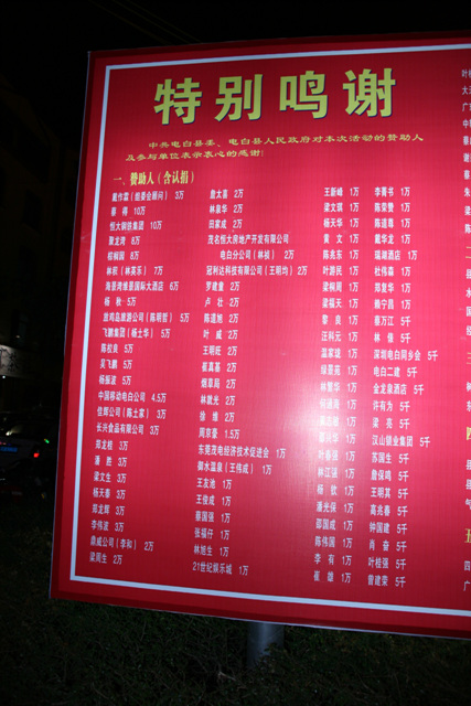 2008年春节期间霞洞放的烟花都不止200万了,可惜在县的烟花晚会上没捐多少钱,蔡得先生捐10万算少了,07年末他卖了一间印刷厂给澳科集团,25亿!自己买了辆路虎揽胜过年,他儿子开了辆宝马X5回电白!霞洞的王勇先生和树仔的林国文先生历年都没捐过钱给县放烟花,不过他们两个比鸣谢榜上的任何一个都有钱!林国文请了容祖儿和罗雪娟回来过年,王勇家门口则停了三辆242万/辆的新款奔驰S600!唉,真他妈奇怪,为什么越有钱的人就越是不给钱放烟花呢????
