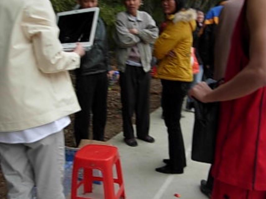 厉害,带了手提电脑进行现场直播。