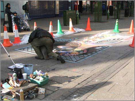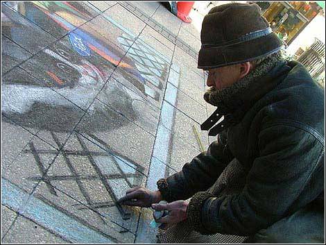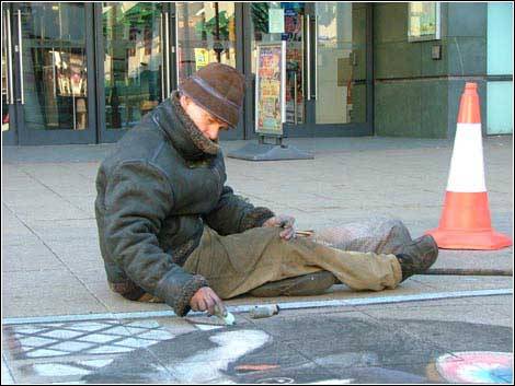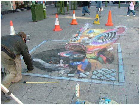 先用粉笔打底稿