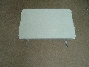 4.[特点]:桌子整体比较精致,面板厚度约2公分左右,加固折叠脚,圆钢直径6.5MM,采用全新钢材用专用模具一次冲压而成,表面经过电镀处理,不易生锈,结实耐用,承重力强.