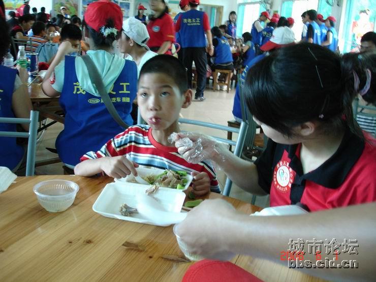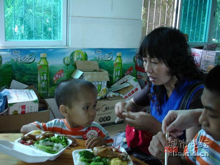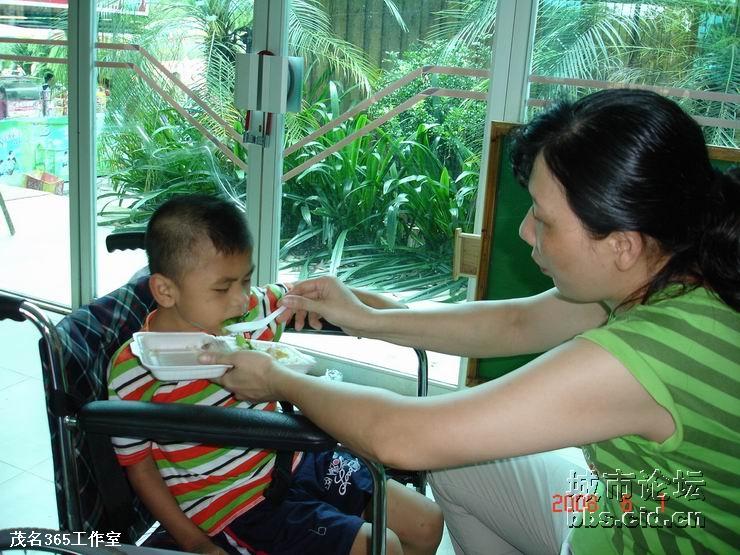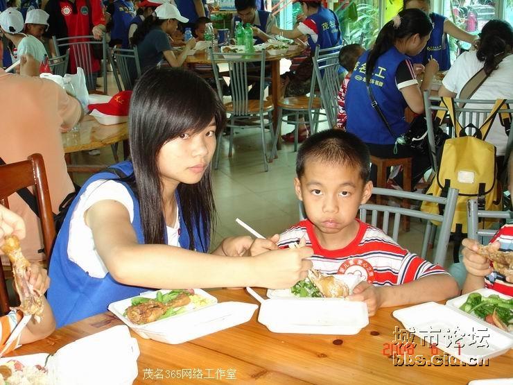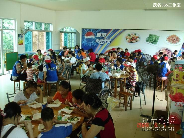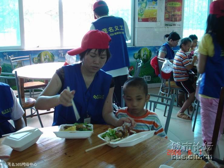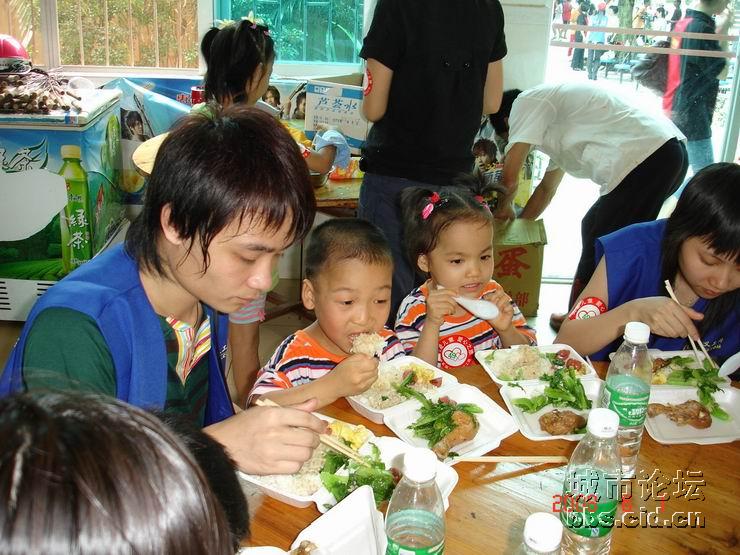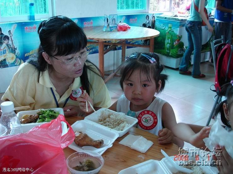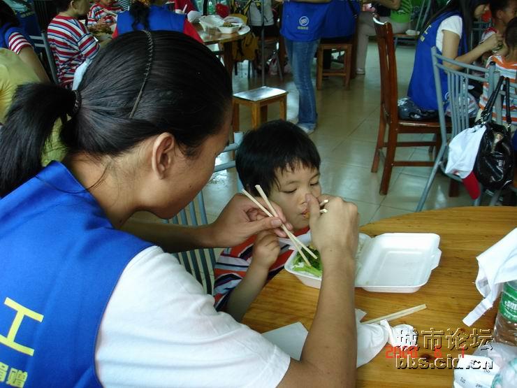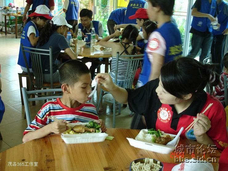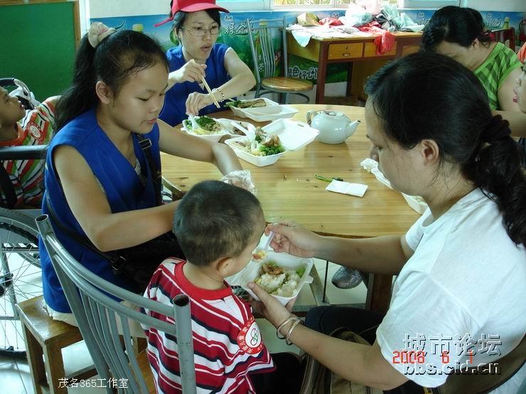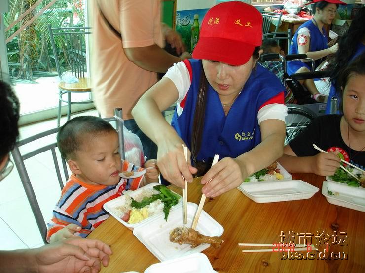 经过一番的游园乐趣后,大家都带领了小朋友们走进园内的餐厅,由茂名国旅全程赞助提供的午餐,义工们都是小心翼翼地帮助小朋友们就餐,由于部分的小朋友有先天性的缺陷,有的义工更是无微不至地喂给他们吃,看见义工们这么悉心照料他们,全场响起了一遍遍热烈的掌声,大家都是见牙不见眼的,场面是如此般的温馨难忘。