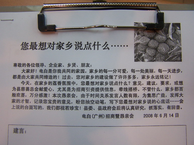 QUOTE(byronroy @ 2008年06月16日 Monday, 07:04 AM) 会场中的部分资料 [attachmentid=178705] [attachmentid=178706] [snapback]2283018[/snapback] 最想对家乡说点什么.... 派武警来维持电白的治安...