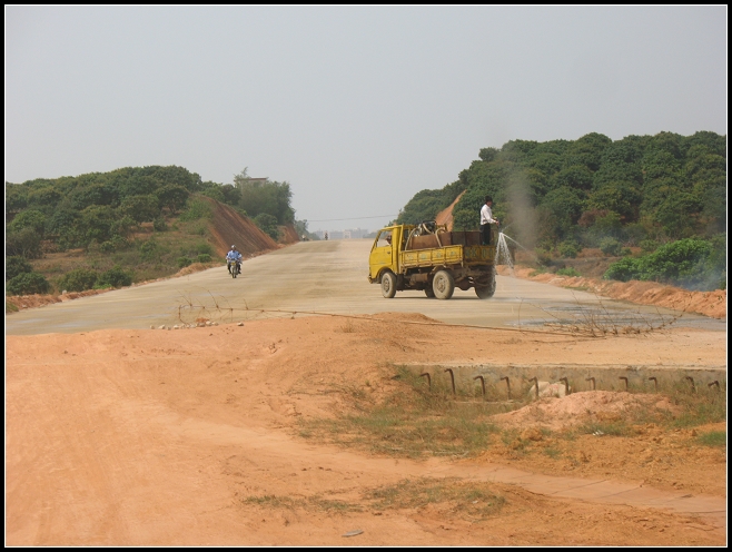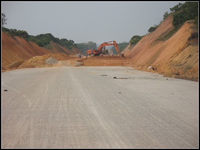 3分1的路段完工是真的,电线杆还没有搬走呢.