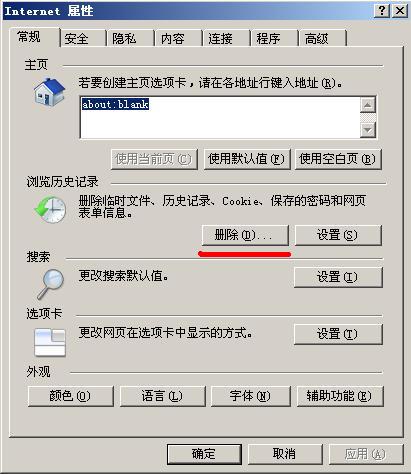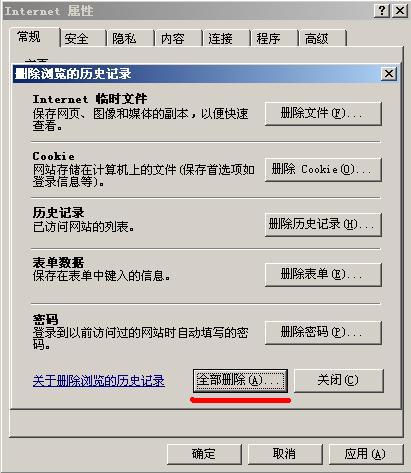 开始---Internet---属性---删除---全部删除