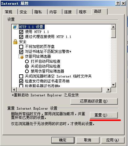 开始---Internet---属性---高级---重置