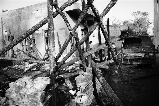 位于村里中部的私人鞭炮加工作坊,已经面目全非,十多平方米用红砖搭建的加工车间,只剩下三面低矮、残缺的断墙,上面沉积着厚厚的黑烟。在现场,由镇、乡、村干部组成的清理队员,正在加工作坊里搬运成品鞭炮、未添火药的炮壳和成包硫磺等化学品。
