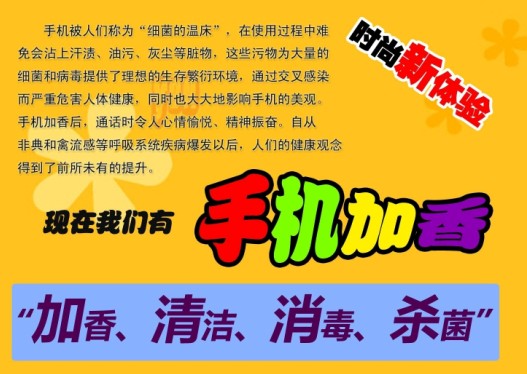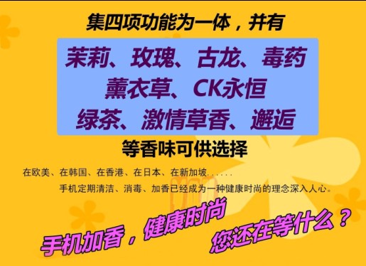 希望大家可以了解到手机加香.消毒.杀菌!是一种健康的手机美容!