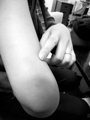 昨日15时,记者在位于玉泉路的十一培训学校门口见到了王老师。王老师脸上的浮肿已褪去,但手臂上的淤痕还清晰可见。王老师说,她是北京某重点中学的化学老师,今年9月开始利用周末时间到十一培训学校辅导高一年级化学课。11月16日,她到十一培训学校上第八次课,课堂上有两个女生没有认真听讲,一边玩手机一边讲话,王老师上前提醒却遭到学生的顶撞。王老师让两名女生到班主任办公室,不料与两名女生同校的一名男生跟着一起走出教室。在走廊里,这名男生与王老师发生口角,并骂了脏话。后王老师返回教室上课,三名学生当天没有回到教室。