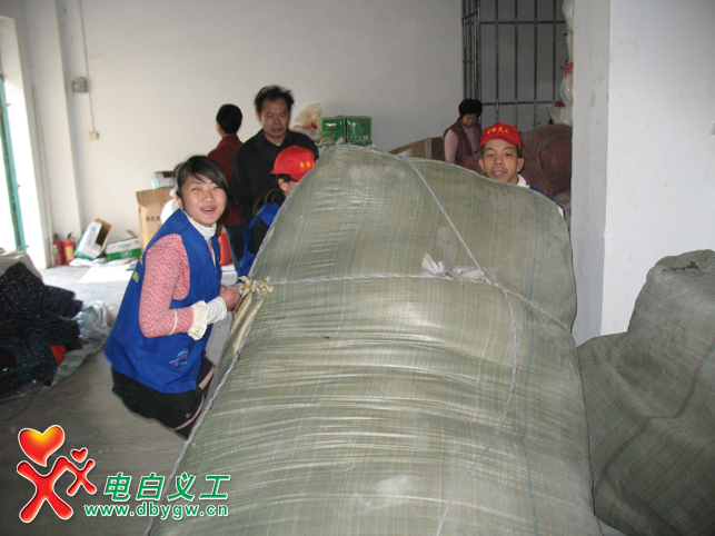 ■ 1月10日,电白义工团接到电白民政局的任务安排,有批救灾慰问御寒物资急需整理入仓,赶在严寒来临之际派送到下面乡镇低保户、特困家庭、五保户手中,数名电白义工在接到任务后,清晨冒着寒风赶到了电白民政局,包括一名特地从茂名赶过来的热心义工也参与到了整理物质活动的行列,在经过两个多小时忙碌搬运,我们完成了入仓整理工作,民政领导与各位义工脸上都浮现了会心的笑容……我们在此祈祷,愿那些有需要的人们能度过一个温暖的冬季!