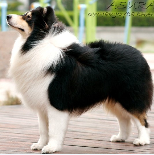 第一张是全英冠军阿修罗 `所介绍两只狗狗的名字`三色叫AD(阿迪达斯) 雕色叫NK (耐克)