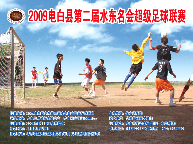 2009电白县第二届水东名会超级足球联赛的宣传海报出来了。