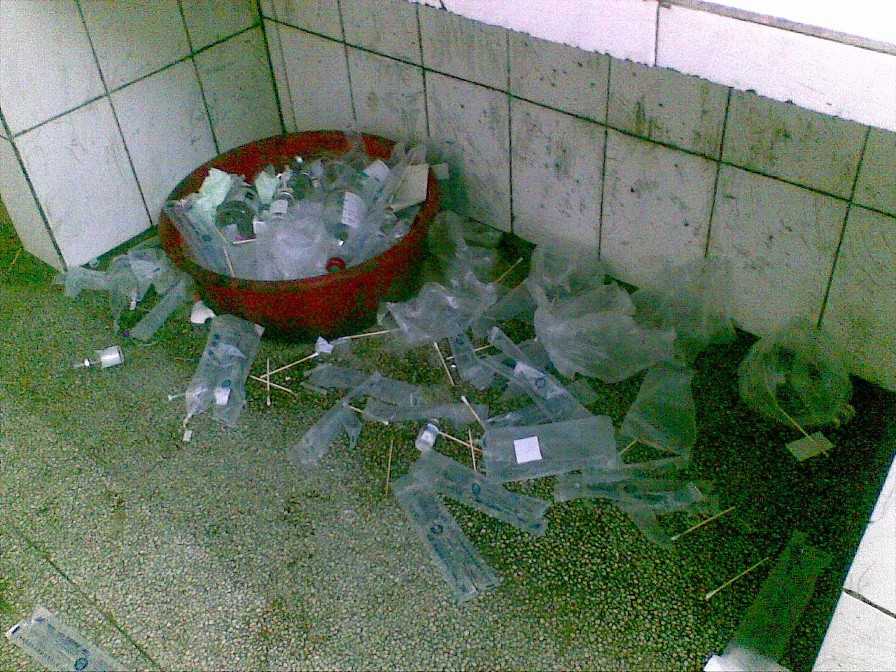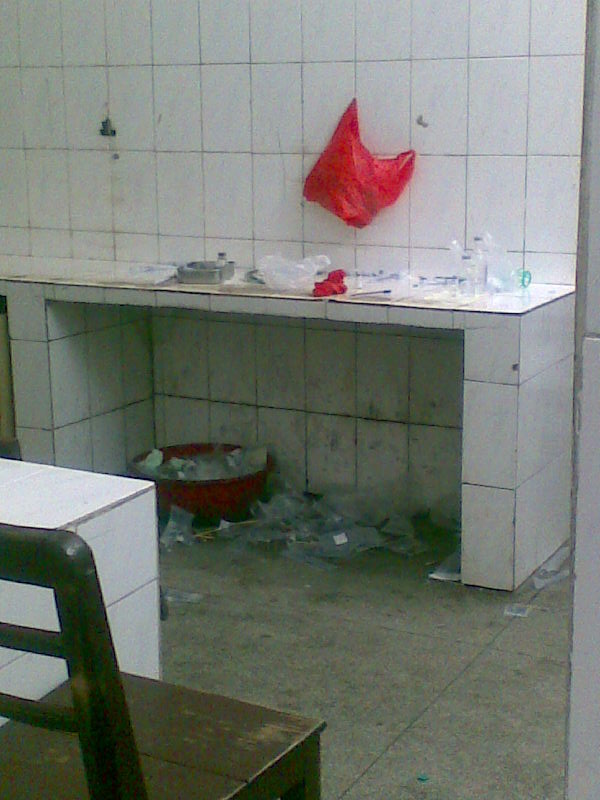 注射室竟然成为滋生病菌的地方,病人打的针管等全部随便掉,如果万一有那个不小心给其他病人的针刺到,无病都变有病。