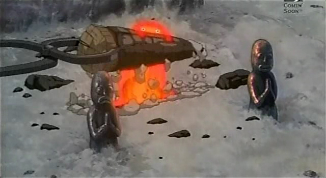 当索菲醒过来以后,她向那奇怪的火焰中扔进一块木头,火焰果然变得越来越像人脸――那就是一张人脸!事实上,这团火焰被一个叫做卡西弗(Calcifer)的魔鬼操纵着,但它也像索菲一样被无法自己挣脱的诅咒给封印了。于是它和索菲定下一个契约:各自帮助对方找出被封印的本来面貌并解除诅咒。当然,索菲也因此找到了一个必须留在城堡里的理由。