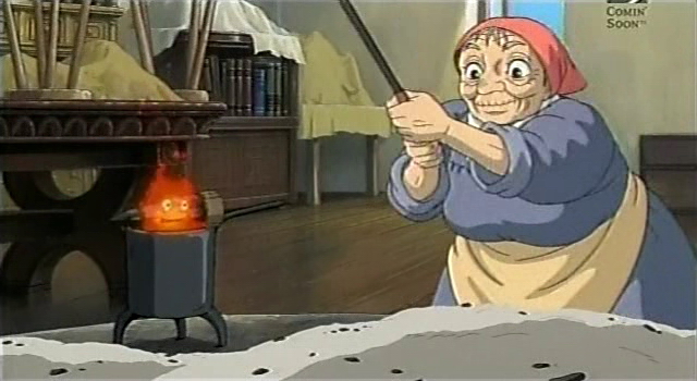年老力衰的索菲艰难而顽强地迈着步子向镇外走去,但当夜幕降临时,她依然没走出多远。索菲吃惊地意识到,现在的自己竟然永远无法走到下一个村子!绝望之时,她发现自己旁边就是那个传说的生人勿近的冷冰冰的庞然大物――移动之城。也许意外苍老的年龄给了这个小小的制帽匠巨大的勇气,也许她实在疲乏困窘已经无法再多走一步。总之她用最后残存的精力敲开了这个可怕的城堡并准备借宿一晚。魔法师居然出门了!而魔法师的徒弟迈克(Michael)则显然嫩了点,面对这个老态龙钟脾气暴躁的不速之客,他显得束手无策手忙脚乱。当索菲终于在火炉面前睡下时,火焰的影子似乎让她看到一个人的面容……