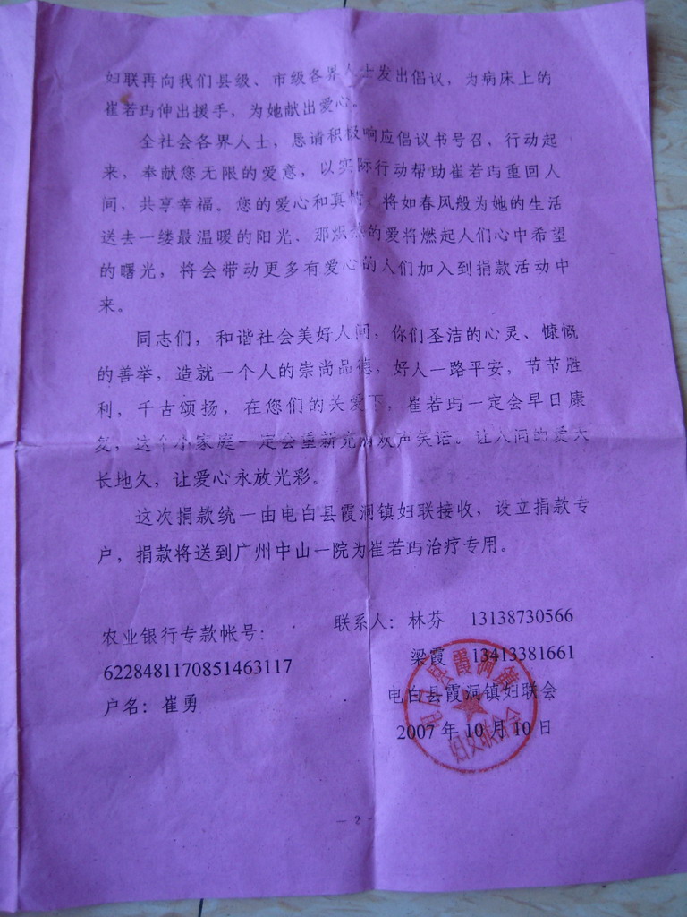 天可怜见..可以理解她家人的心情...希望这家人再拾回欢笑,健康快乐吧!虽然我们只能尽点绵薄之力.还有我会发动我认识的朋友捐点的....继续会再捐点..关注下进展..