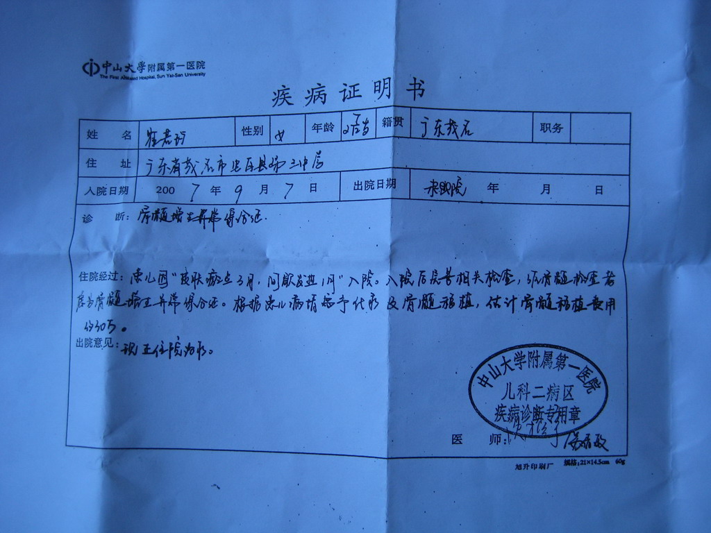 阿B,小女孩好象是在中山一院住院,你先去探望下...........