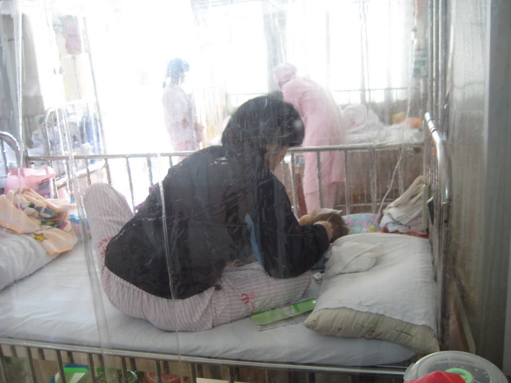因为病因不允许进入病房,我偶尔隔窗而望,生怕惊扰到她,悄悄隔玻璃拍了两张现场后询问值班护士而离开.
