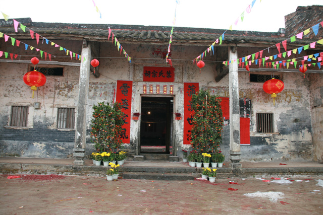 大宗祠建P垌内村屯,坐西向东。入伙对联:长发其祥,暖(?)得我所。大宗祠门联:济阳欣庆,f垌分基。蔡族济阳郡。