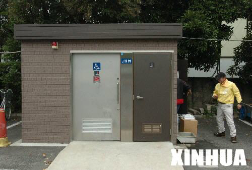 这是设在日本东京芝公园内的厕所(摄于2004年11月14日)。在日本,外出的人们除了可以使用公共厕所,还可以随意使用周边餐馆、商店内的厕所。逢有大型活动,便开设简易移动厕所供人们使用。
