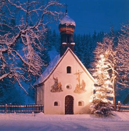 aglow beside a tiny chapel in Germany's Karwendel mountains,