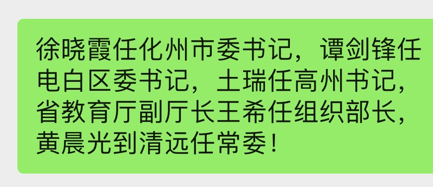 书记不是高配了,有点不可理解。可能迟些剑锋也当市常委?电白书记不是常委怎协调三大平台呢。