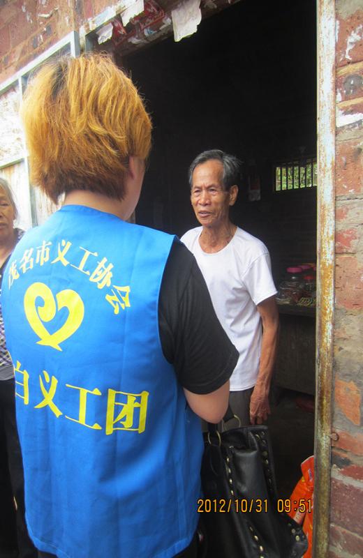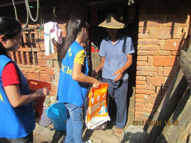 在社会各界的关注下,在众多爱心人士的帮助与支持下,电白义工团“爱在冬日,情暖空巢”活动于2012年11月10、17日于电白县水东,旦场,树仔,林头,霞洞,沙琅、观珠等镇顺利展开。