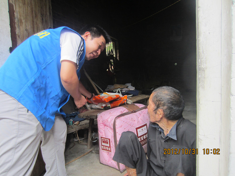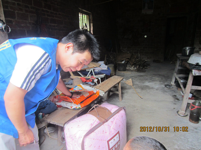在向社会募集物资时,爱心老板给义工团捐赠一批大米、被子及生活用品。凝聚了社会爱心人士的支持与关爱,义工们分组把物资逐户送到46户五保、特困户、孤儿手上,义工带着爱心人士的慰问金转送给部分探访对象。