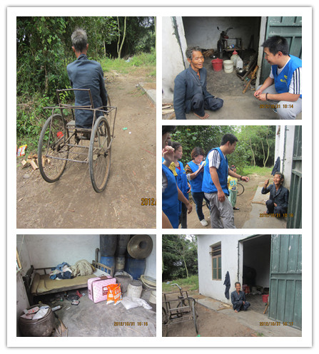 7、黄*川 男,68岁,五保户,龙山鱼塘村附近,腿残疾不能走路,每天靠着破旧的轮椅出入。房子简陋。每月拿老人金55元,并无其他收入。